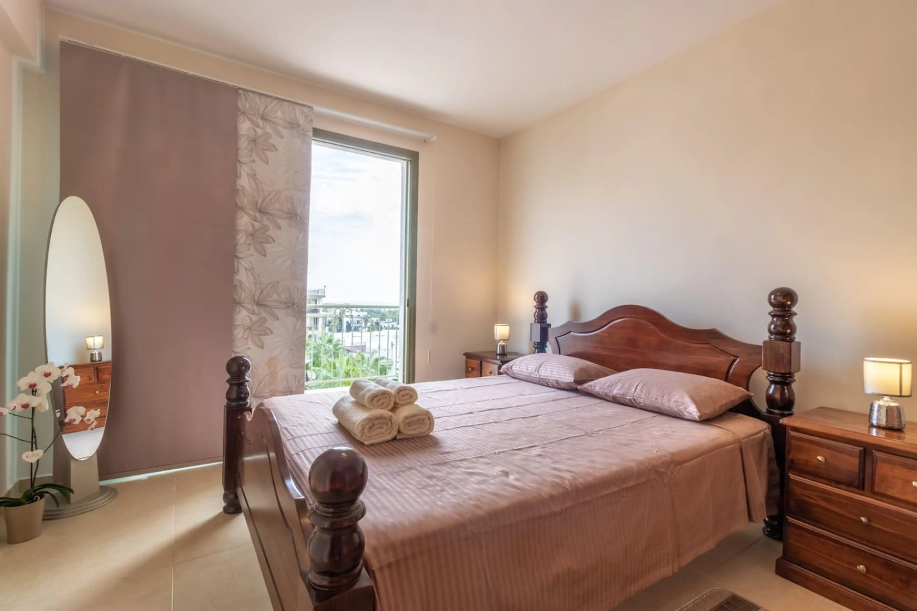 A modern and cozy apartment located quite complex, near the city centre. 10 minutes walking from the Venus beach, 5 minutes walking from the supermarket Lidl and a bus stop that leads to Mall of Paphos, Harbour & Coral Bay.
